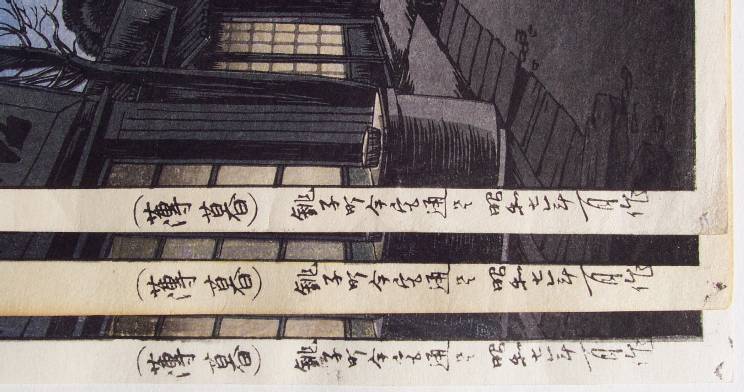 With the workload of producing some 567 different "Hasui images" in editions of likely 100 copies at each printing, it is little