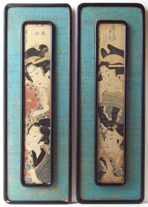 "hashira-e" (pillar-print) format. Nicely double-framed in round-cornered Japanese style (some chips/wear). |