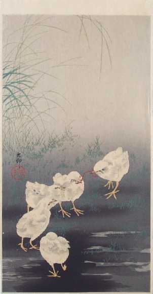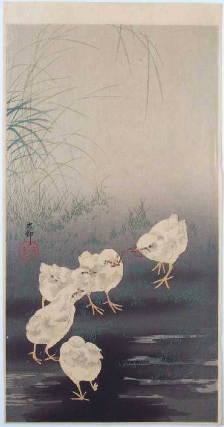 Very Fine. Skillful "bokashi" shading; light "gauffrage" to chicks; extremely fine detailing. |