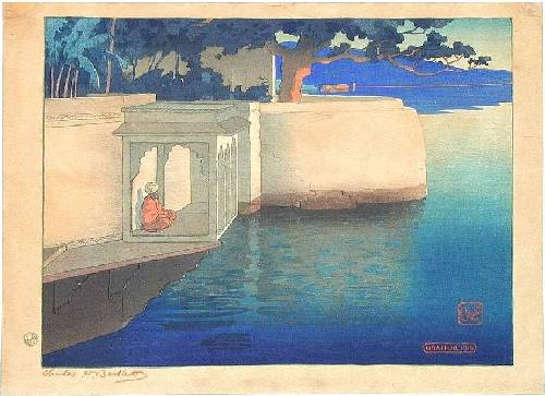 "Udaipura" also known as "Meditation at Sunset." (red pencil signature lower margin, by artist) |