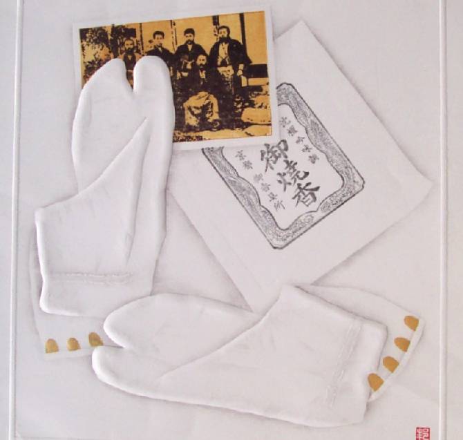 Colorful "tabi" image, the "glove-like" tabi are Japanese sockings. Splendid deluxe printing. |