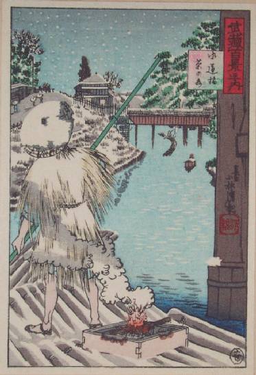 Wonderfully detailed image. Print is a miniturized version from Kiyochika's "One Hundred Famous Views of Musashi" series of 1884-85. |