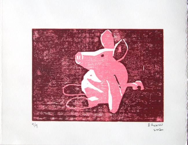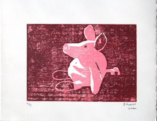Cute!! Using 2 colors, this print is produced via the destructive "reduction process"--thusly guaranteeing a true Limited Edition totalling ONLY 9 prints. |