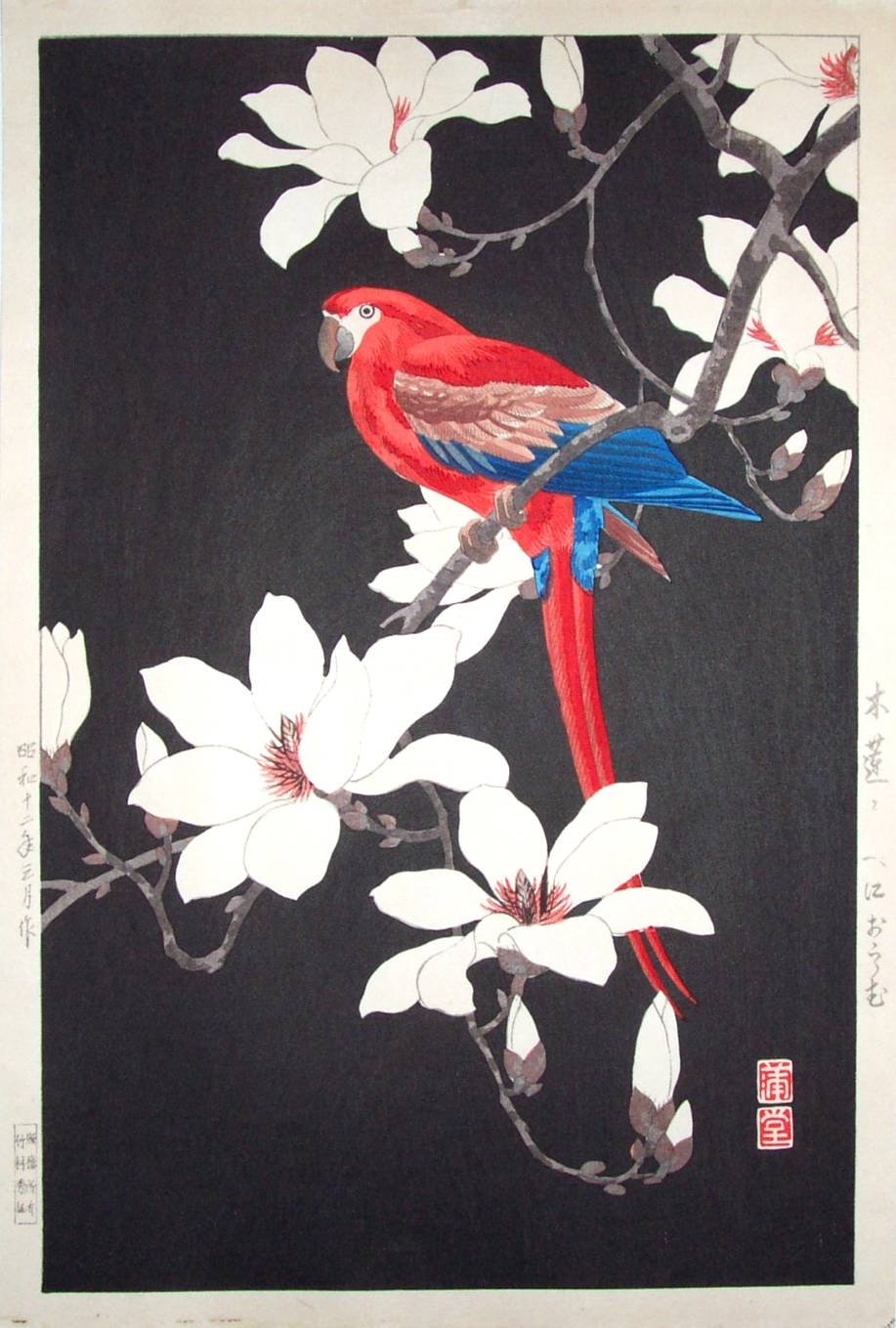 "Red Parrot and Magnolia" ("Mokuren to Beni-Omu") |
