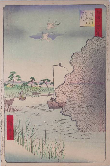 "Scattered Pines, Tone River (The Fisherman's Net)" #71 ("Tonegawa Barabara-matsu") |