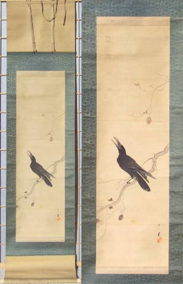 Entire "kakejiku" (hanging scroll) is 17 3/4 x 75 overall. |