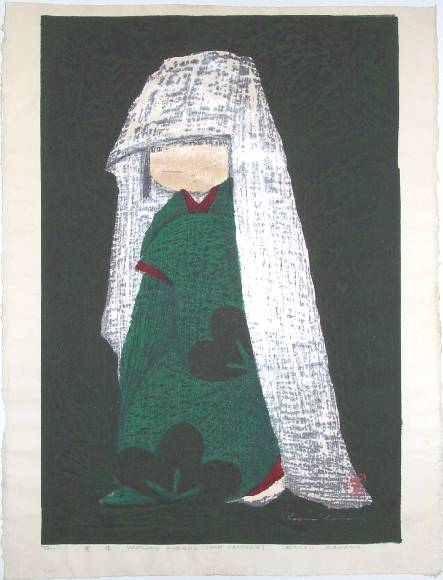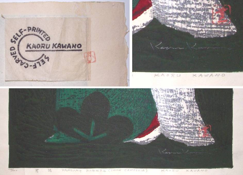 Pencil-signed in lower image. Sealed as "Self-Carved, Self-printed--Kaoru Kawano" on verso by artist. |