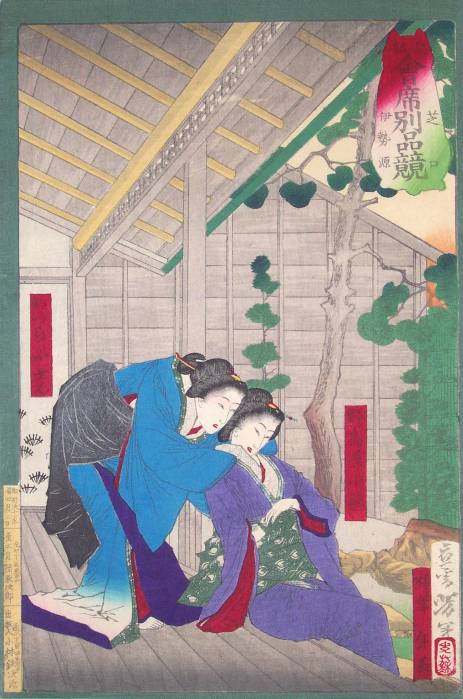 "Katsura Osen and Otoku of Noshima-ya House, in Isegen Restaurant at Shibakuchi" ("**") |