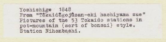 "Fifty-three Stations of the Tokaido as Bonsai--Station 1, Nihonbashi" |