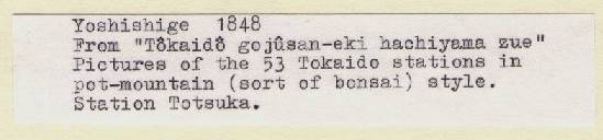 "Fifty-three Stations of the Tokaido as Bonsai--Station 6, Totsuka" |