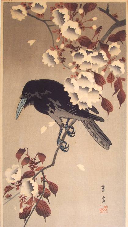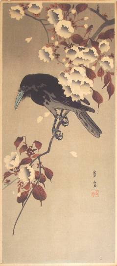 Very Fine. Skillfully executed "bokashi" shading cherry blossoms, leaves, and background; extensive "gauffrage" to blossoms; nicely visible woodgrain in background; nicely detailed carving. |