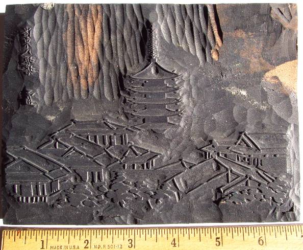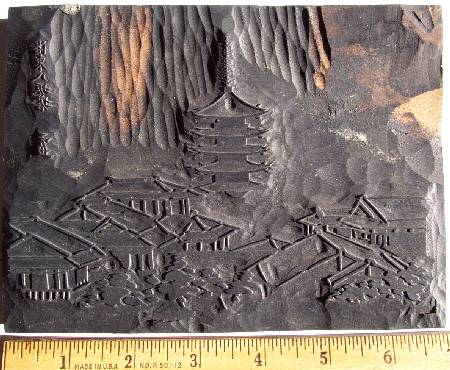 Quite an unusual find. An early, hand-carved cherrywood woodblock--Taisho or early Showa period carving. Seldom available. |