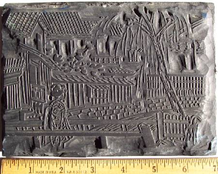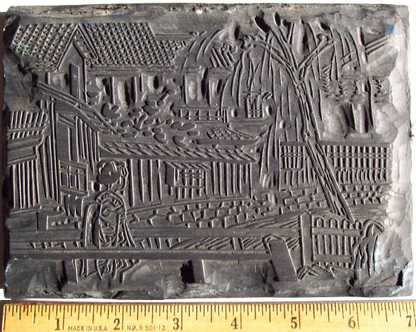 Quite an unusual find. An early, hand-carved cherrywood woodblock--Taisho or early Showa period carving. Seldom available. |