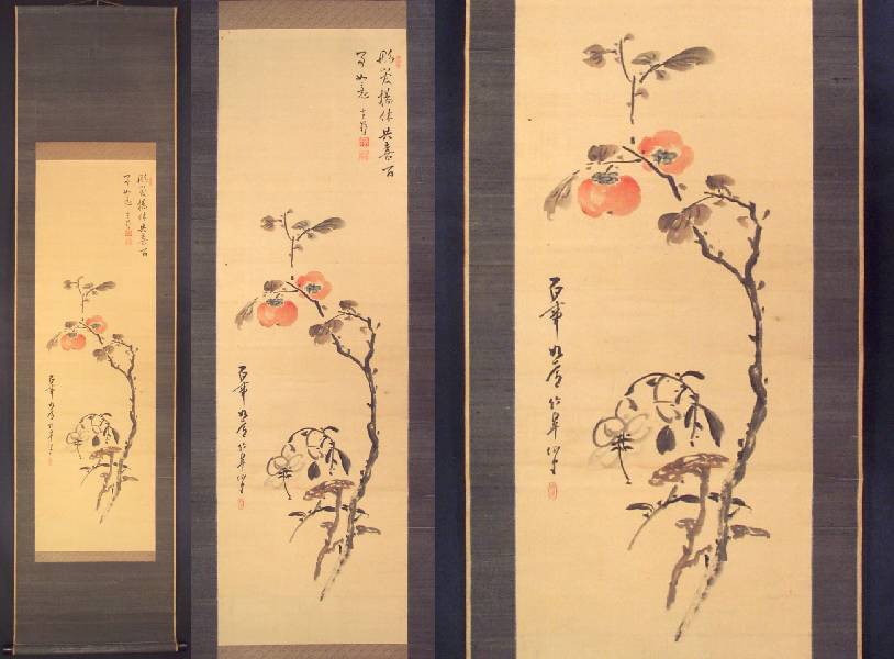 Attractively painted branch of persimmon fruit--nicely mounted as a hanging