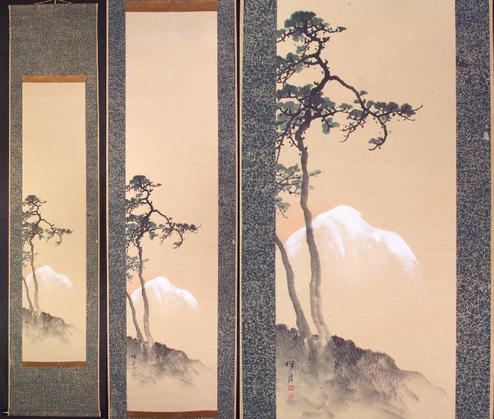 Entire "kakejiku" (hanging scroll) is 16 3/4 x 76 overall. |