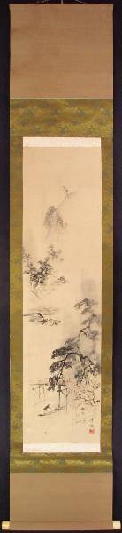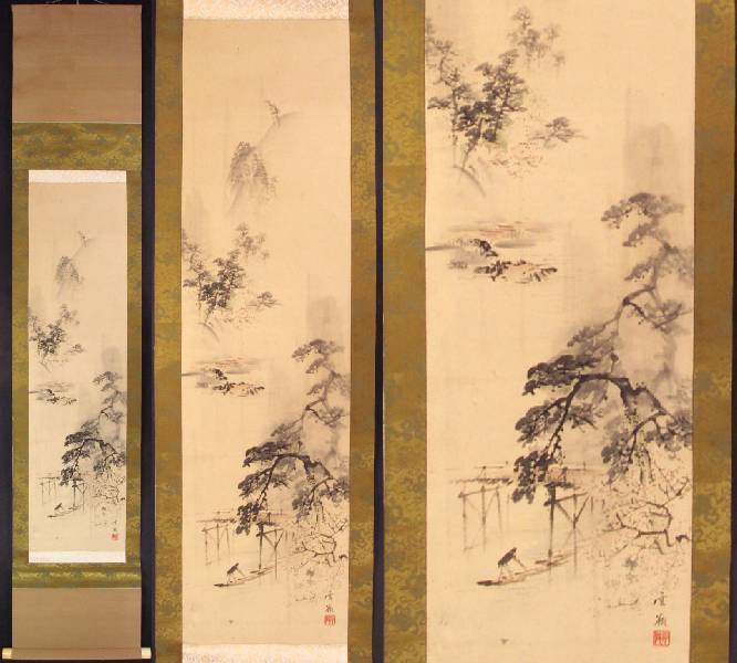 Entire "kakejiku" (hanging scroll) is 13 3/4 x 69 1/4 overall. |