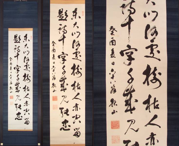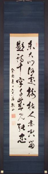 Entire "kakejiku" (hanging scroll) is 18 1/2 x 77 1/4 overall. |