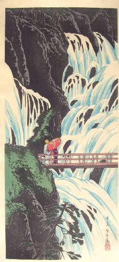 Very Fine. Superbly executed "bokashi" shading throughout; light "gauffrage" to waterfalls; crisply and highly