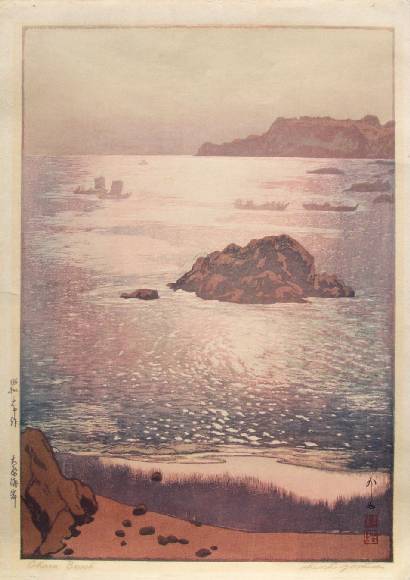 Very large ("double-oban"), beautiful Yoshida "seascape" image. Seldom seen--impressively large format and difficult to print.