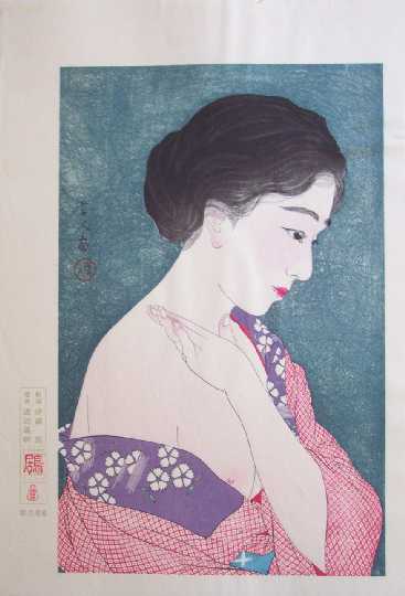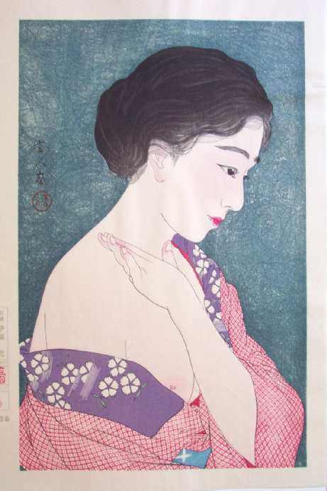 Very Fine. Nicely over-printed hairlines; superb "bokashi" (gradation of colors) shading to face, hand and