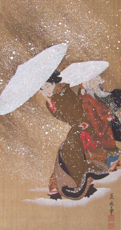 "Two Beauties in Falling Snow" |