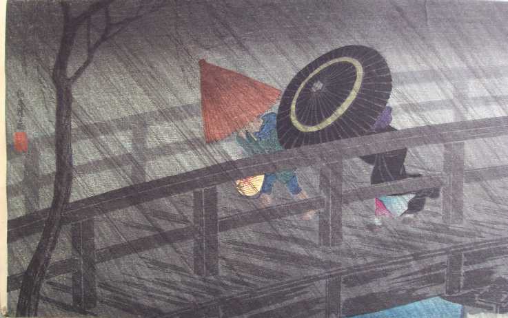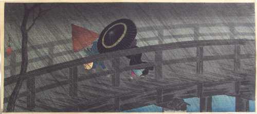"Night Shower at Izumi Bridge" (post-earthquake) ("Izumibashi no __ Ame") |