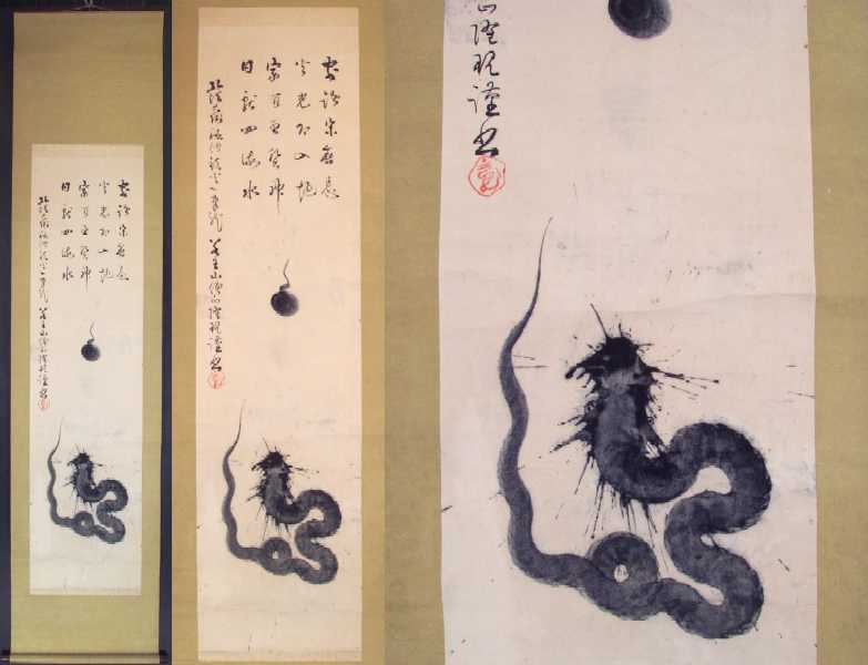 Painting itself is of black "sumi" inks on light tan paper. |