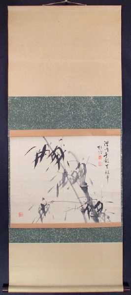 Attractively painted image of bamboo, mounted as a hanging