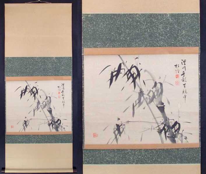 Entire "kakejiku" (hanging scroll) is 20 1/8 x 51 overall. |