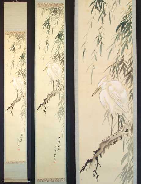 Entire "kakejiku" (hanging scroll) is 9 1/4 x 72 overall. |