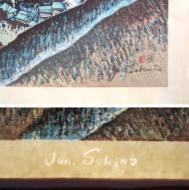 Appears to be "brush-signed" (within image) by artist. Large "Jun Sekino" watermark in lower margin. |
