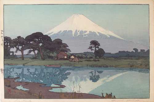 Very Fine. Skillfully executed "bokashi" shading; light "gauffrage" to Fuji's snow; life-like reflection. |