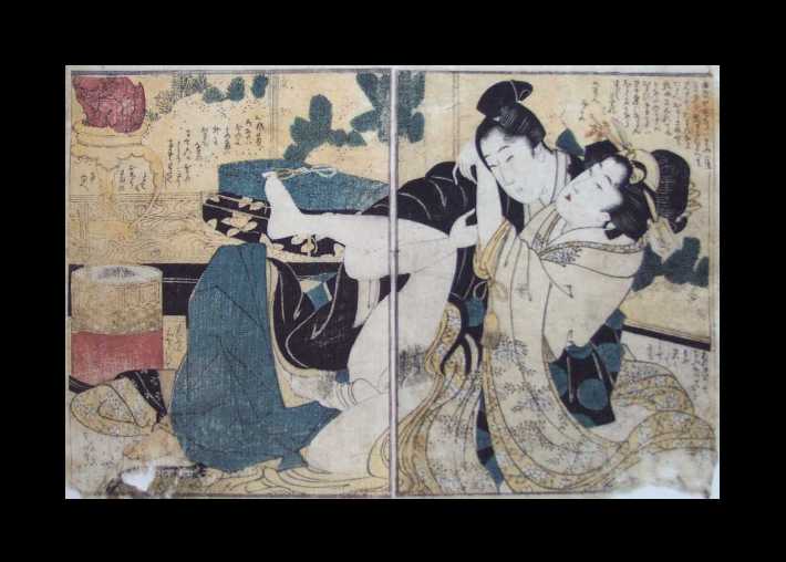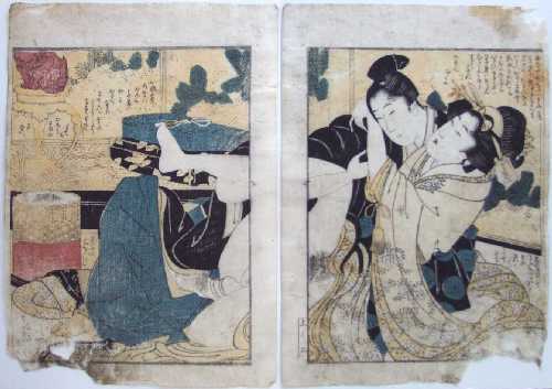 Original "shunga" prints by Utamaro are both highly desirable and difficult to locate. Matted (as shown