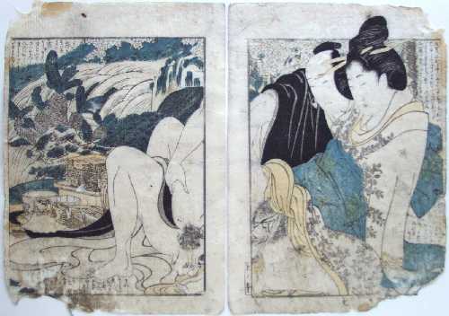 Original "shunga" prints by Utamaro are both highly desirable and difficult to locate. Matted (as shown