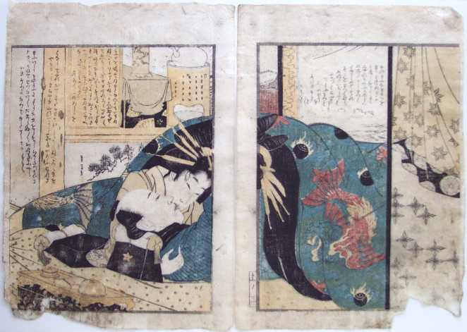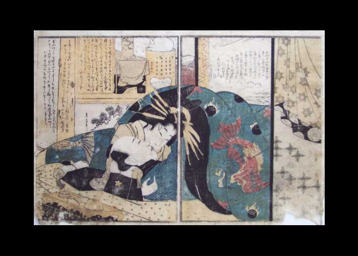 Original "shunga" prints by Utamaro are both highly desirable and difficult to locate. Matted (as shown