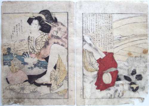 Original "shunga" prints by Utamaro are both highly desirable and difficult to locate. Matted (as shown