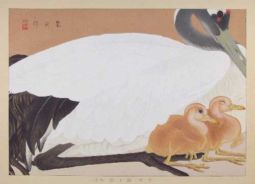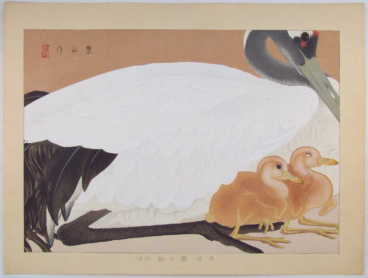 "Red-crowned Crane and Chicks (Late Spring)" ("Tanchou-zuru to Hina (Banshun)") (aka,"Downy Goose") |