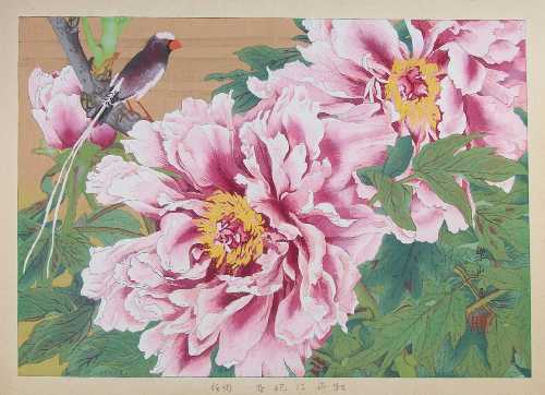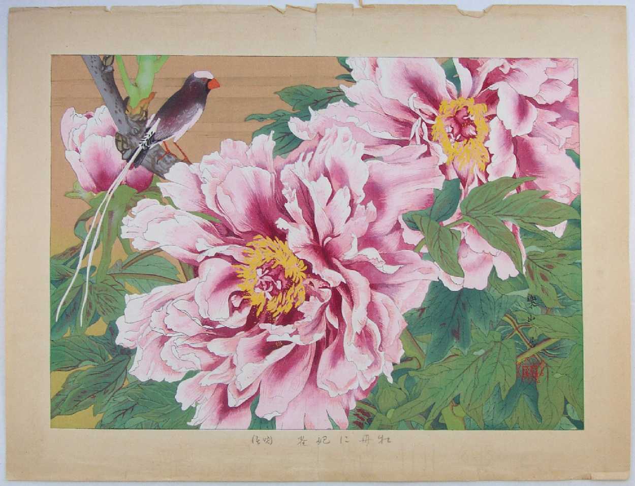 "Tree Peonies and Straw-tailed Whydah (Late Spring)" ("botan ni kisaki-suzume (banshun)") |