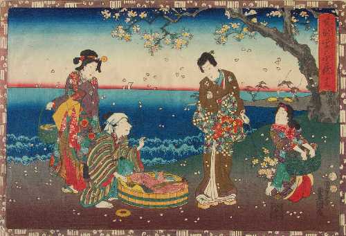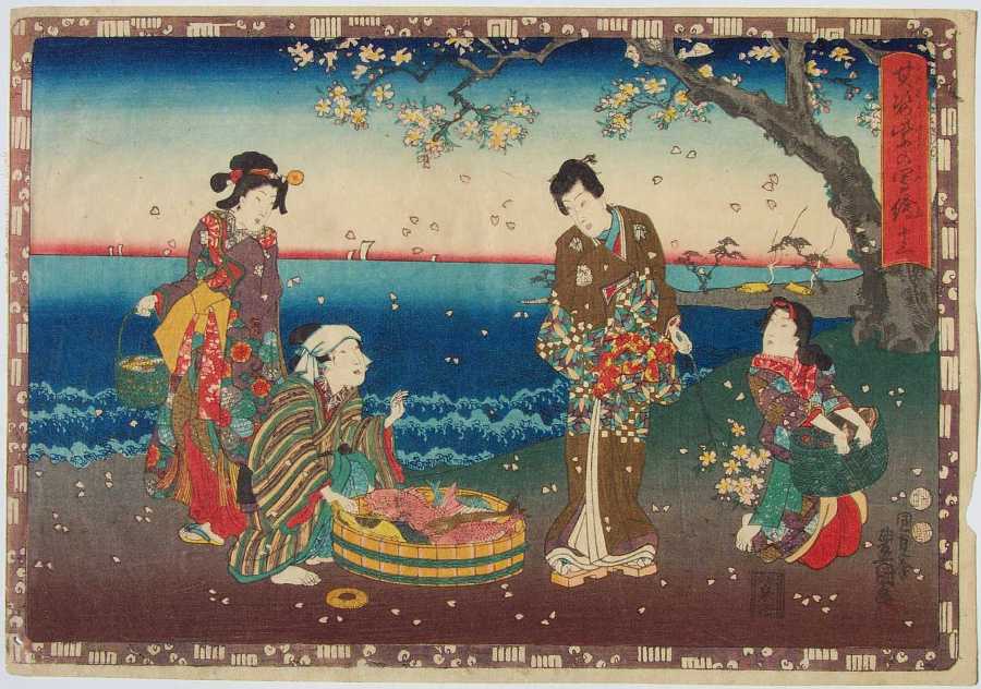 An attractively colorful print from Kunisada's widely popular 1849-53 "The Tale of Genji" series. |