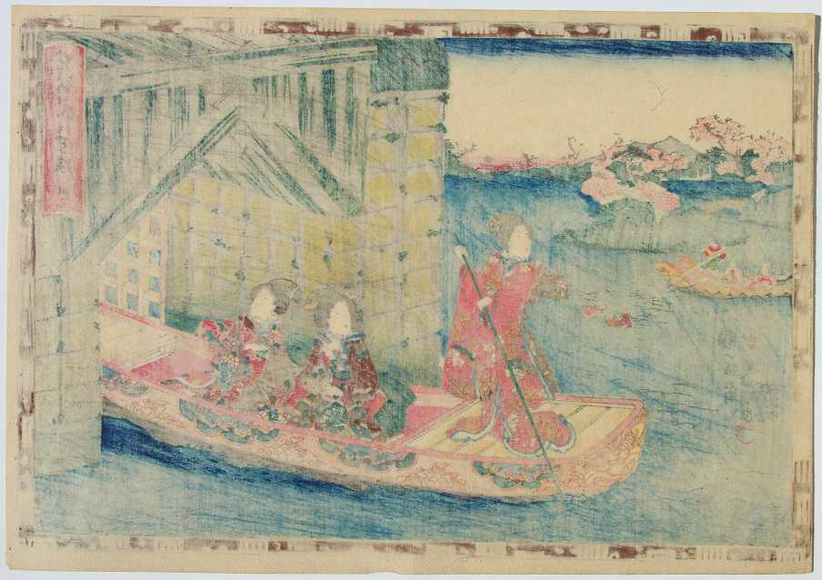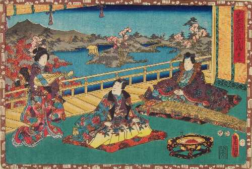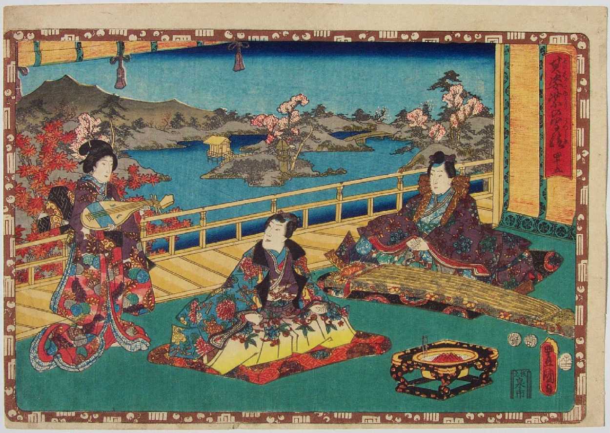 An attractively colorful print from Kunisada's widely popular 1849-53 "The Tale of Genji" series. |