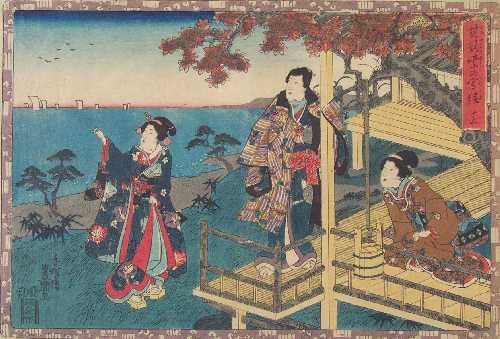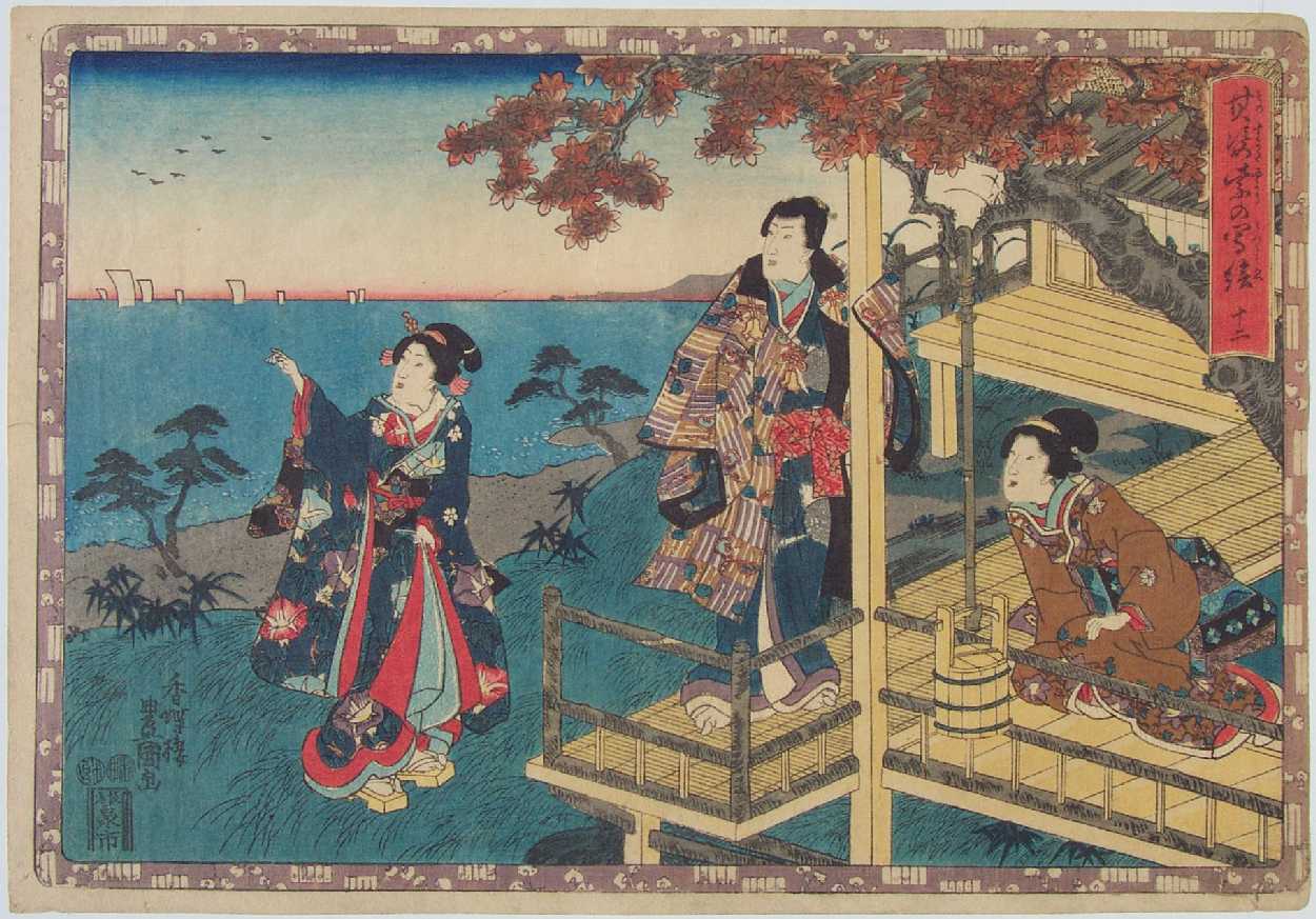 An attractively colorful print from Kunisada's widely popular 1849-53 "The Tale of Genji" series. |