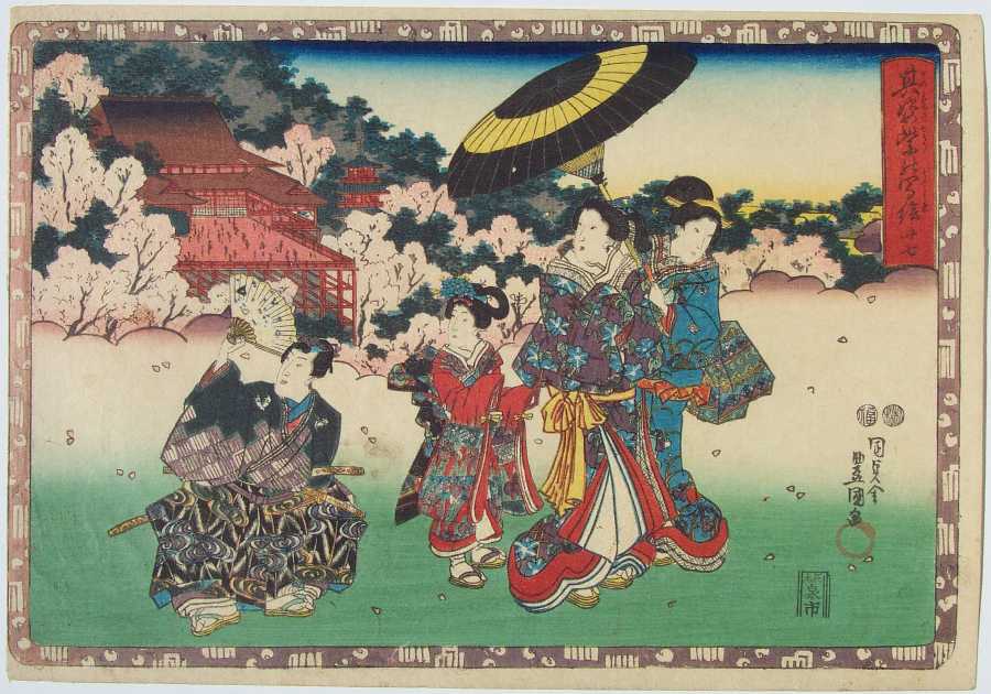 An attractively colorful print from Kunisada's widely popular 1849-53 "The Tale of Genji" series. |