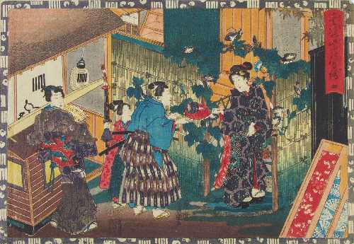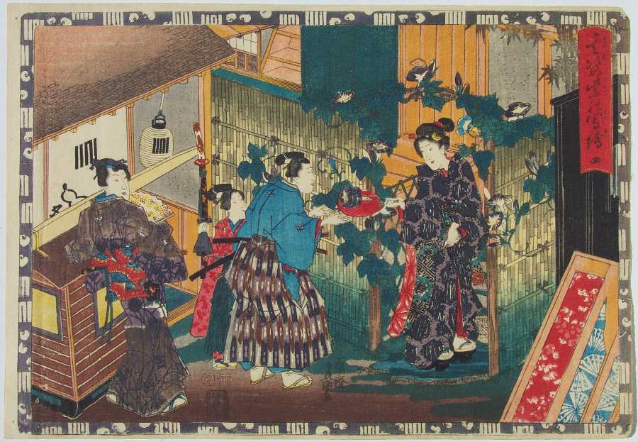 An attractively colorful print from Kunisada's widely popular 1849-53 "The Tale of Genji" series. |