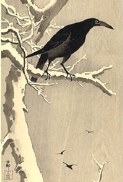 Great crow on a branch image. PRE-1923 earthquake (note: Daikoku-ya Publisher ceased business in 1923). |