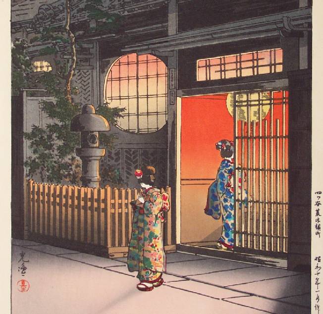 Superb mastery of light for which Koitsu is so well known. Classic "Tea House" image. |