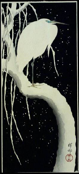 Unquestionably Koson's finest "kacho-e" image. Quoting: "Richard Illing describes the print as 'a masterpiece of graphic art'....one of the most highly valued designs by Koson." Rarely available--flawless condition. |