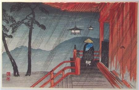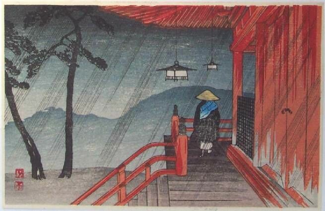 Very Fine. Superbly executed "bokashi" shading; diagonal streaks of over-printed rain; crisply and highly detailed carving. |