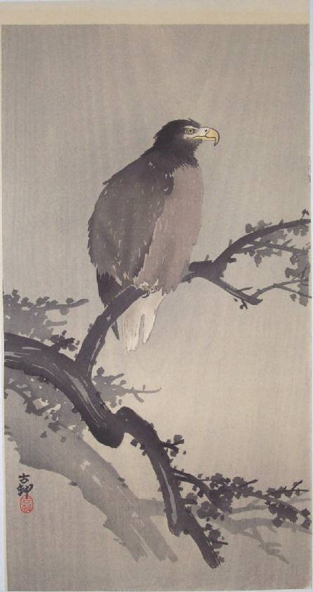 Very Fine. Superbly executed "bokashi" shading; strongly visible woodgrain; light "gauffrage" to eagle;