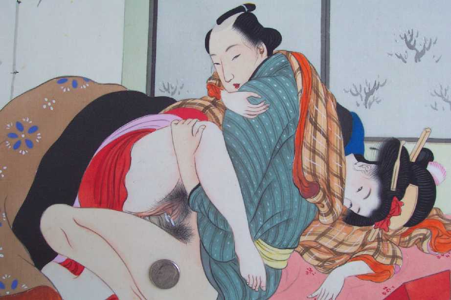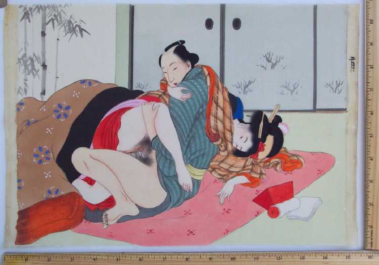 Very Fine. Superbly executed by hand and extremely detailed. An original (one-of-a-kind) shunga design