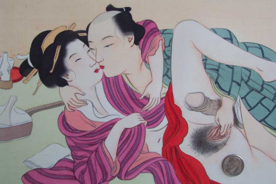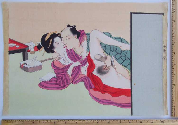 "shunga" designs. From an album of 12 original paintings on silk which preceeded the publication of a 12 woodblock